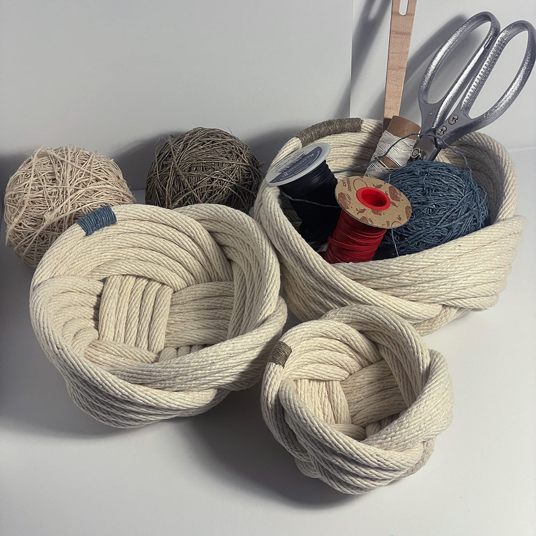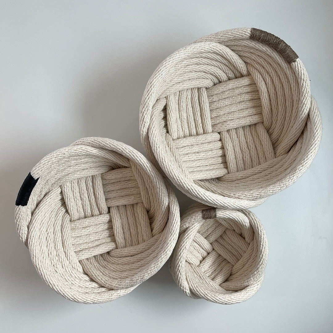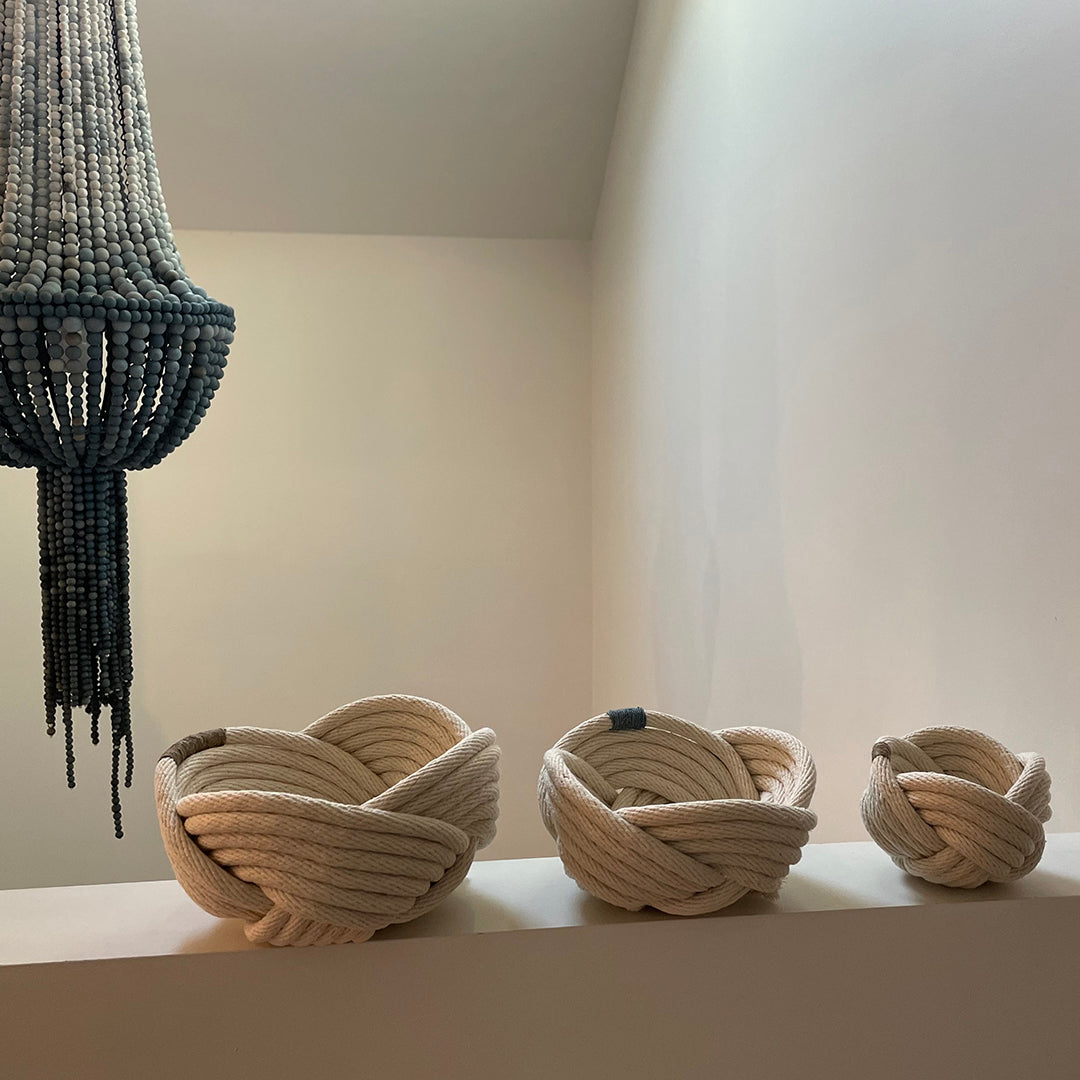 Made from natural cotton braid, they are the perfect hold-all for jewellery, ear buds, keys, cards or clutter. Or maybe some potpourri. Add a little texture and style to the everyday with these wonderful woven bowls.